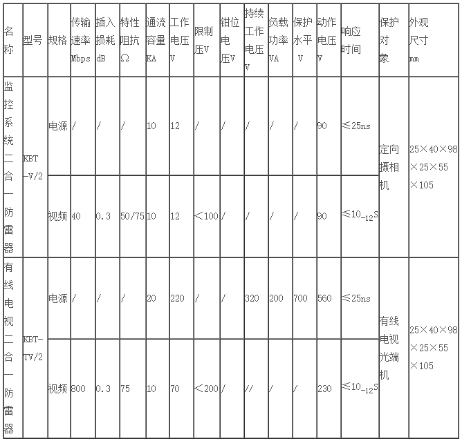 二合一監(jiān)控多功能防雷器(KBT-V2/12) 型號(hào):KBT-V2/12 價(jià)格:面議 產(chǎn)品介紹: