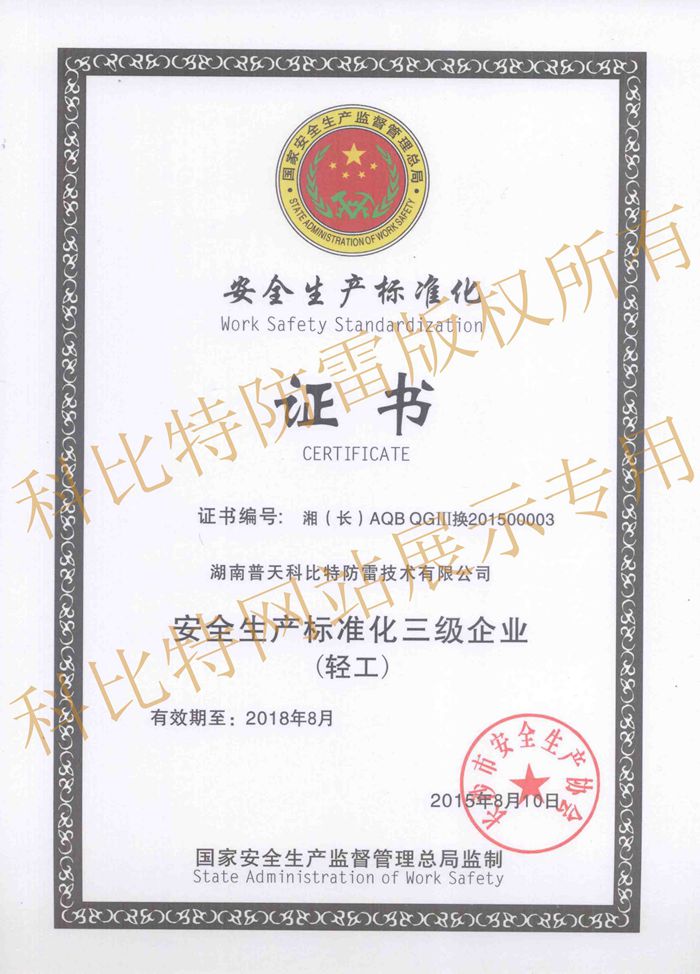 安全生產(chǎn)標(biāo)準(zhǔn)化證書